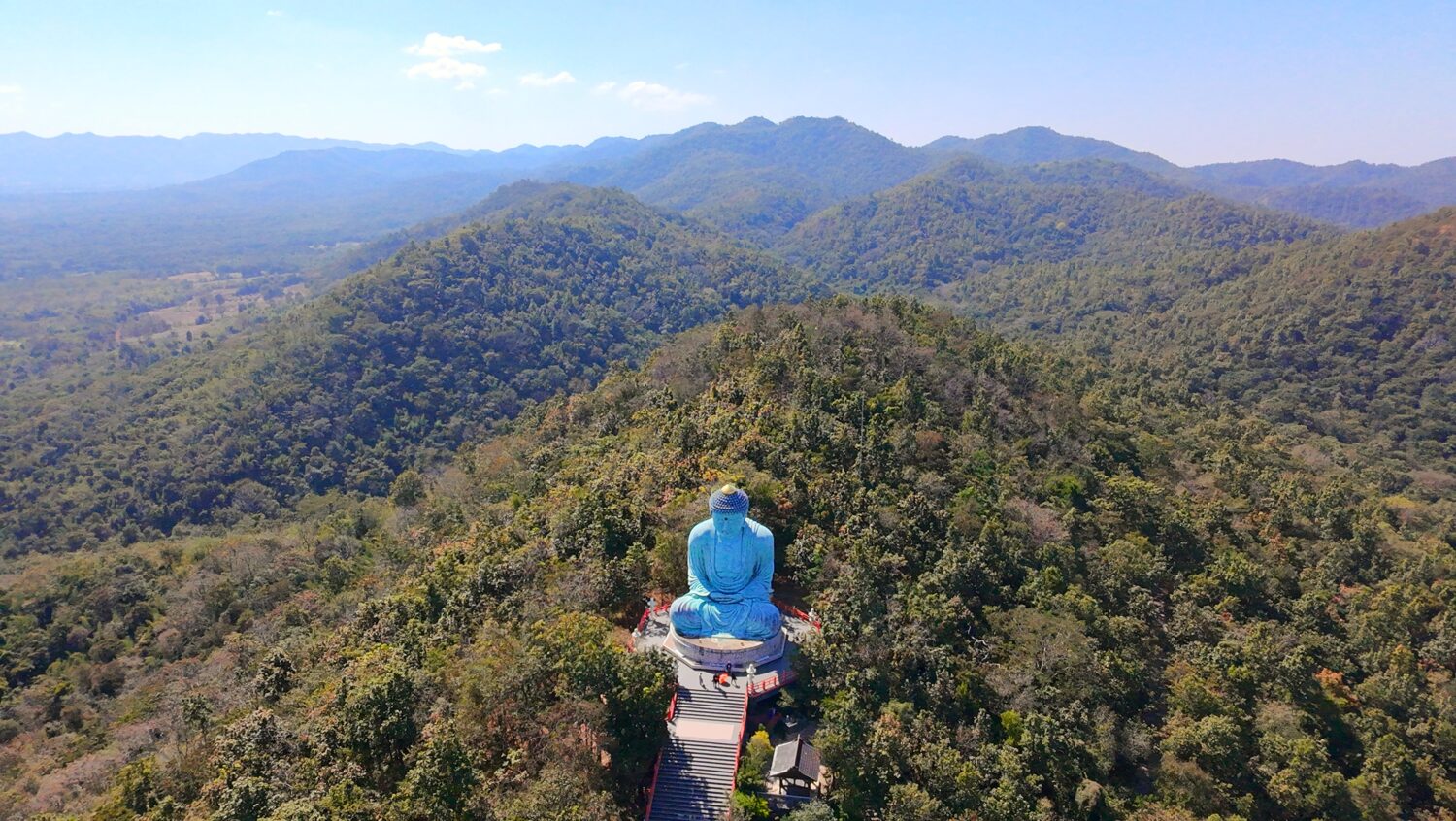 Oberhalb auf dem Berg und umgeben von Wald thront der Große Buddha Doi Phra Chan (Daibutsu),